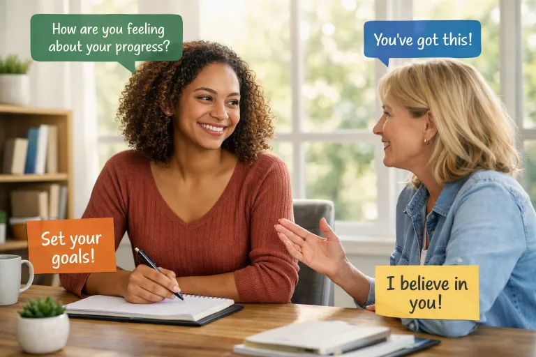 The key benefits of coaching occur when clients are fully engaged. To integrate coaching into your life seamlessly: Commit honestly to each session for tailored guidance. Practice strategies consistently, as small steps lead to significant results. Review progress, reflect on challenges, and adjust plans with your coach to stay aligned with goals. Incorporate daily routines like brief goal reviews, reflection, and planning. Regular check-ins or micro-coaching sessions help maintain momentum. Adding mindfulness, journaling, or visualization can boost outcomes. These techniques, combined with professional support, deepen commitment and self-efficacy, enriching your growth journey.